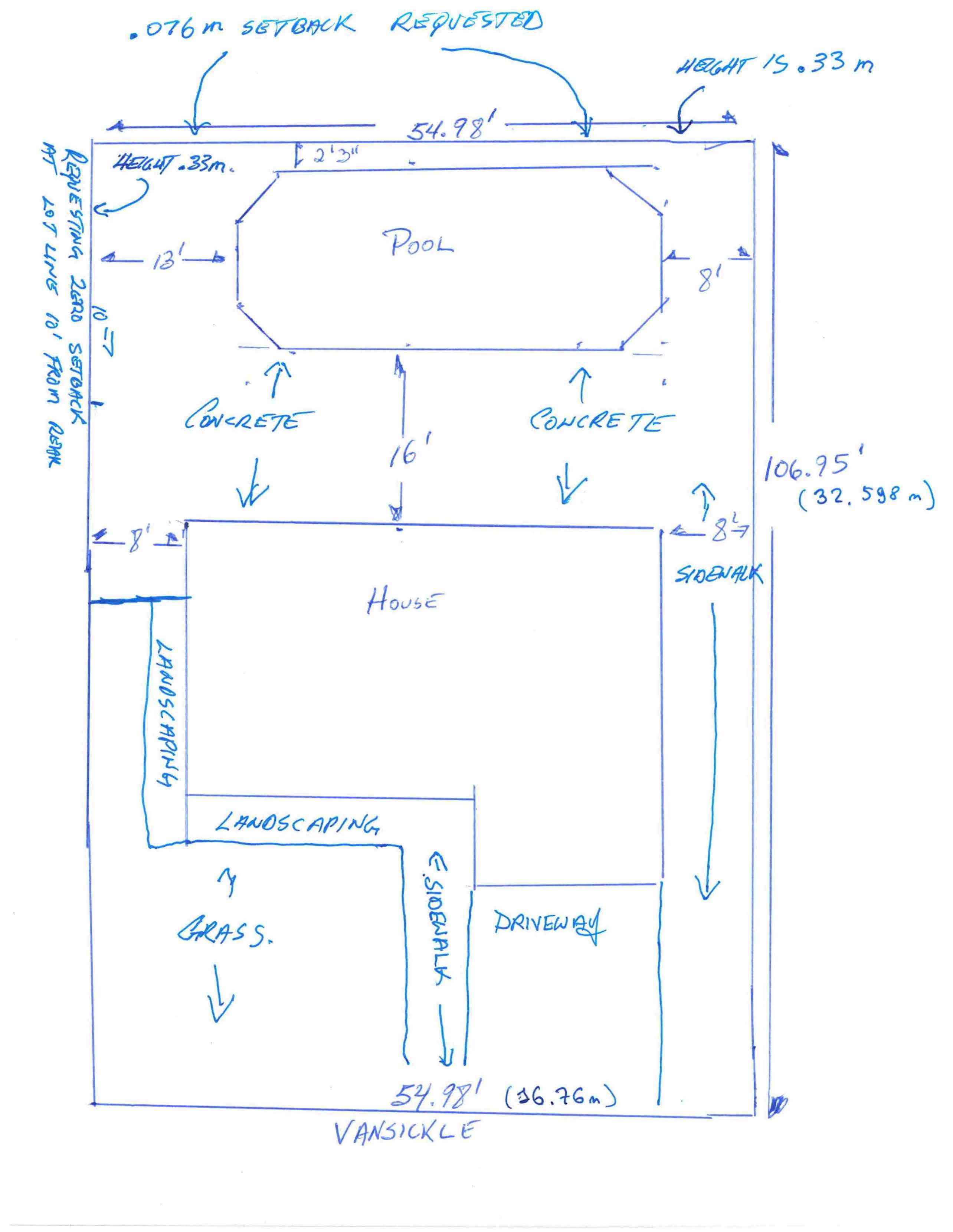 - A reduction in the minimum required rear lot line setback for a platform structure with a height above grade 0.6 m or less from 1.8 m to 0.076 m.